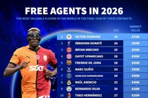 体育资讯7月2日讯 《转会市场》列出了已经进入合同年的球员身价情况,奥斯梅恩独自领跑。