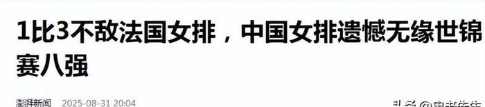 中国女排止步世锦赛十六强,比分是1-3,对手是法国女排。这一下,十五年里的“最差战绩”挂上了墙,姑娘们赛后落泪,镜头拉近,都是不甘心的眼神。